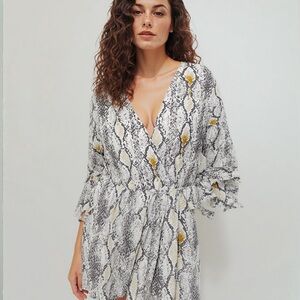 Express bell sleeve snakeskin romper/ jumper/ jumpsuit. Size large, very good shape! Huge discounts on bundles! Bundle items from my closet and I will send a private offer! Reasonable offers accepted!