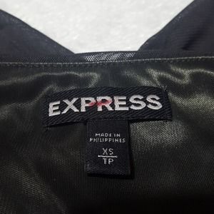 Express black faux wrap camisole peplum swing top with adjustable spaghetti straps.