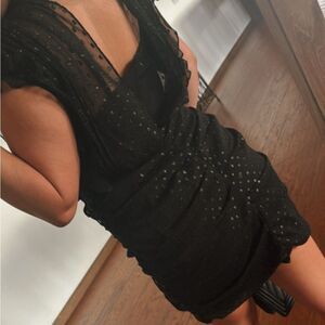 Express black polka dot party mini dress Great condition Size L - just a little too too big on me