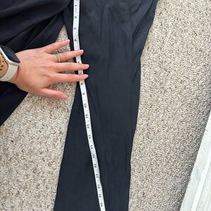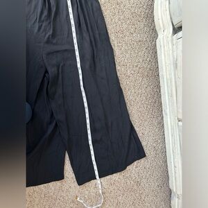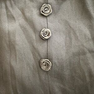 Great condition. This is a jumpsuit which looks very similar to a dress when standing still. Flowy sleeves. Black rose details down chest. There is a waterfalling center pleat on each leg. Back zipper for closure. Acetate and rayon blend. Measurements shown.
