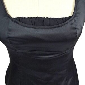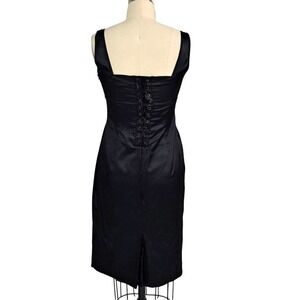express size 4 Empire waist dress with a shelf bodice, lace-up back, lined and side underarm zipper. It feels and looks like silk, but is polyester spandex. Adorable!