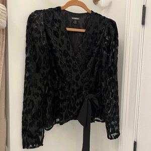 Express black shirt top with pattern and bow detail