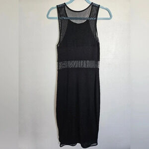 Express black sleeveless fitted midi dress with mesh insets size 6