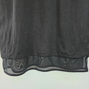 Color: Black with black mesh inlay panels at shoulders, waist, back, and bottom trim