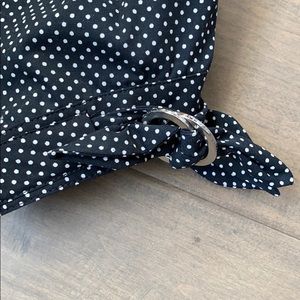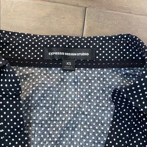 Express black top with white polka dots.
