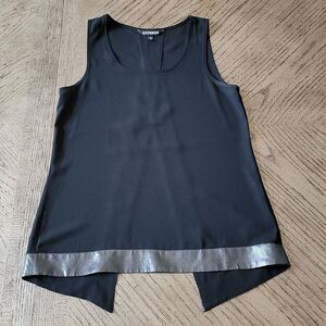 Express XS black evening top with metallic silver trimming and nice back opening. Classy but sexxyy!🖤🤍