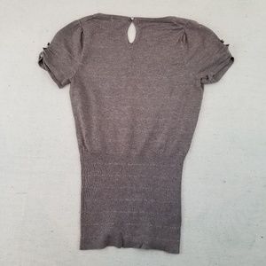 Day to night blouse with glitter details and keyhole closure in the back. 16" Bust 24" Length