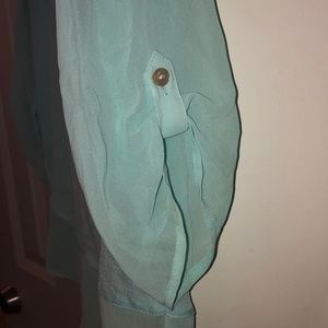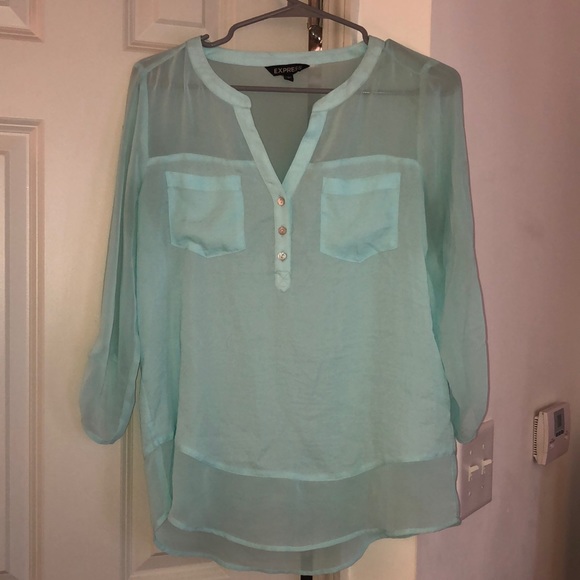 Express small blouse. Sheer top and back with sheer bottom. buttoned 3/4 sleeves. 3 buttons down front with 2 pockets. never worn.