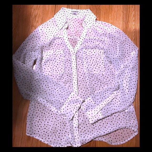 White blouse with black stars - see through material but looks great with black cami