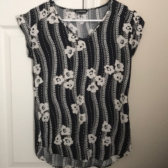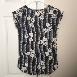 Black blouse with white flowers with a hint of pink on them. Silk Xs