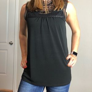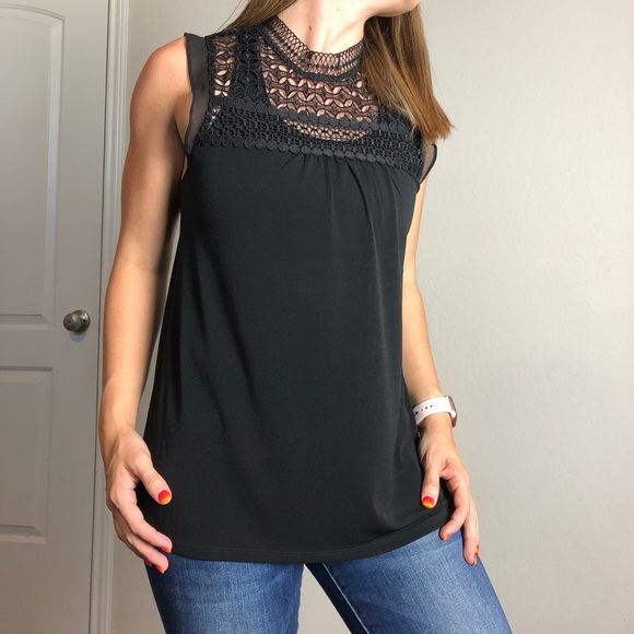 Black lace top from Express. Excuse the black sports bra underneath, it’s much sexier with a strapless or black lace bra.