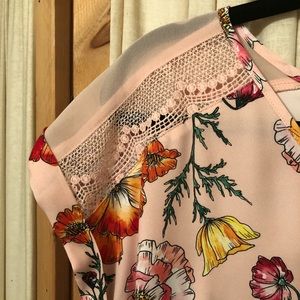 Vibrant colors of pinks and reds and more with bold flowers on this blouse from Express! Sleeves have a lovely lace pattern on the shoulder. Never worn!!