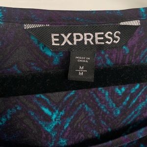 Used, but excellent condition. Express too. Black, purple, and teal pattern. Rolled sleeves