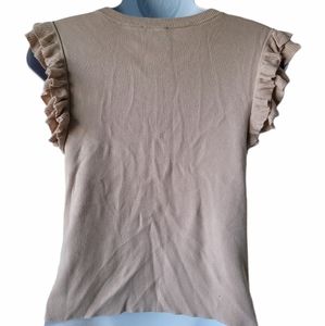 Ruffle short sleeve express blouse with peekaboo cleavage opening