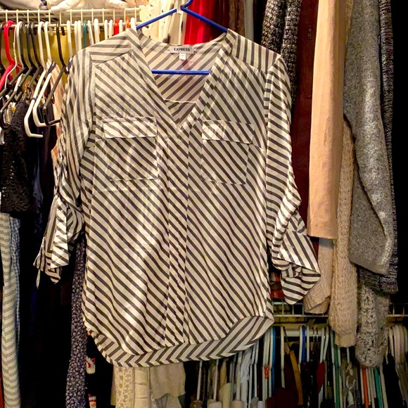 Brand new gray striped blouse from express. Excellent condition, worn once