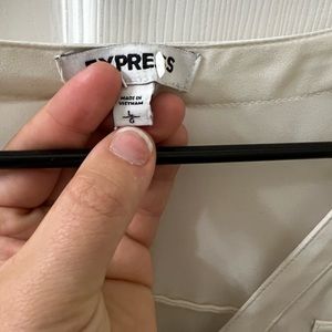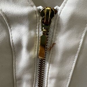 White/cream express blouse with gold zipper. Does have a small make up stain as pictured that can probably use a little TLC to get removed.