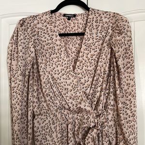 Excellent condition, worn only once! Light pink and beige color. 100% polyester material. Stretchy waist band