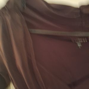 Brand new, never worn. Silky cross over, fold over neckline with waist ties plum colored Express top! Very pretty top!