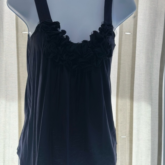 Chic black tank top with ruffle detail. Perfect for casual outings.