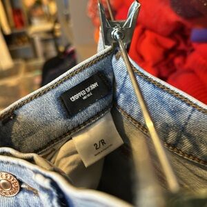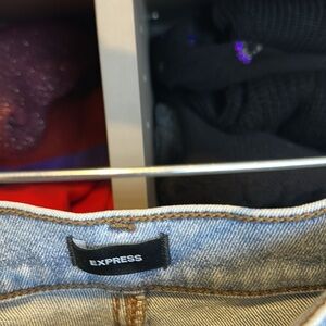 Express blur raw hem distresses cropped skinny mid rise jeans size 2