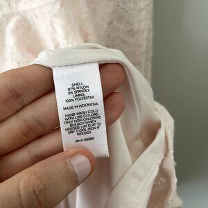A light pink lace summer sundress. Made with 97% nylon and 3% spandex. Labeled a women's size small.