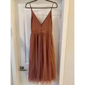 Express blush pink v-neck midi dress with tulle Size 4 EUC fairy feminine