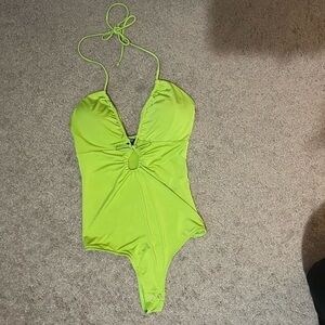 Express body contour like green cut out bodysuit top size X Small
