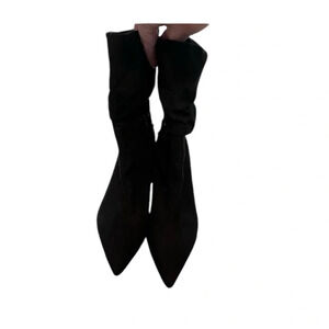 Elevate your style with these chic Express black suede stiletto booties. Designed with a sleek pointed toe, slouchy shaft, and high stiletto heel, they’re perfect for a night out or adding polish to any outfit.