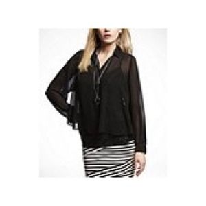 A sheer, sophisticated piece with a boxy shape and a silky finish. Point collar with six-button placket Long sleeves with two button closures at the cuffs Subtle shirttail hem, hangs slightly longer in front. Polyester Machine wash Imported.