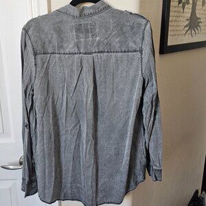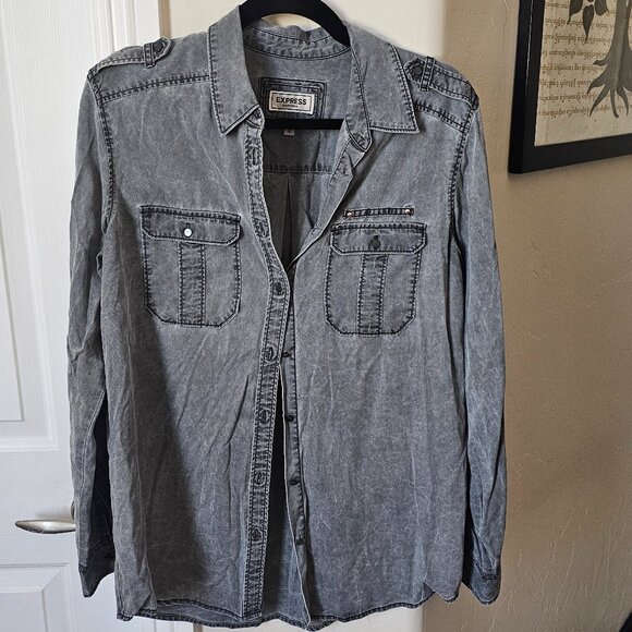 Express boyfriend button down shirt copper rivet details shoulder utility tabs