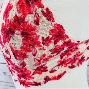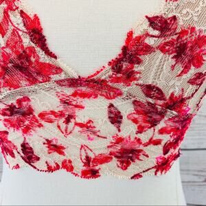 Express bralette with floral patterned lace. Cream with coral, pink, burgundy. Adjustable straps. Size small.