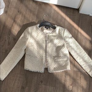 Express Bundle!!! 5 items for $216! An Express tweed suit (originally $138 tor jacket, $79 for skirt), a tweed jacket (originally $138), and two satin shirts (burgundy and black, originally $52 each). If you buy this bundle for $216, all six items are included. For more details, check individual listings. Jackets are xs, skirt is size 0, satin tops are xxs. Jacket that is not a part of the suit is the only item with a slight flaw (discoloration (blue dye transfer) as seen in photos).