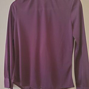 Express, burgundy, long sleeve, sheer, button down blouse with tie, size small