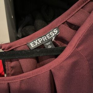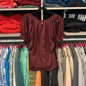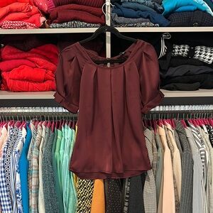 Express burgundy shirt puff sleeve back button keyhole closure top size XS