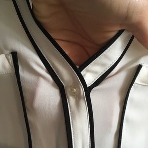 The black trim gives the blouse contrast and really makes it pop alone or under a blazer.