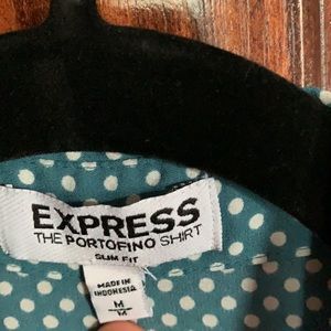 Express button down shirt in size M. No fraying, no missing buttons, slim fit, teal color
