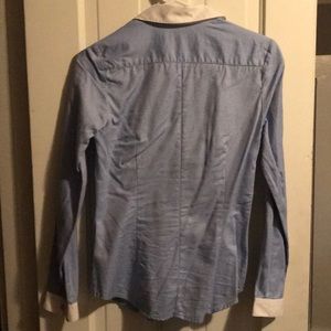 Worn twice, light blue and white stripe Express button up with white cuff and collar detailing
