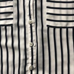 Black and white striped, express, button up, sleeves top.