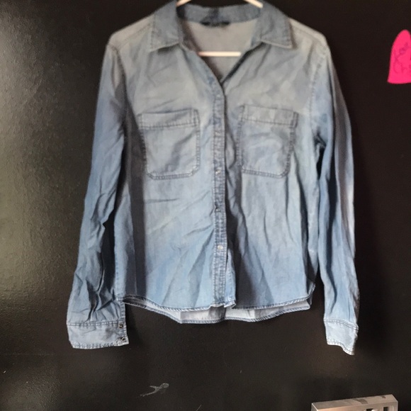 Looks like a jean button up with the comfort of cotton. Like new condition. Feel free to make an offer✨