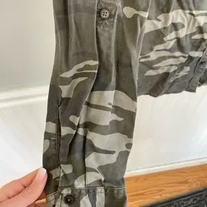 I think this was worn once. Has bottoms on the sleeves to roll sleeves up and secure