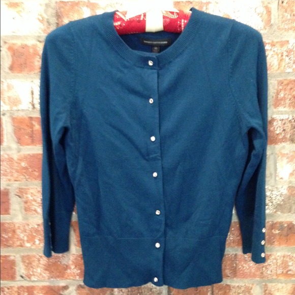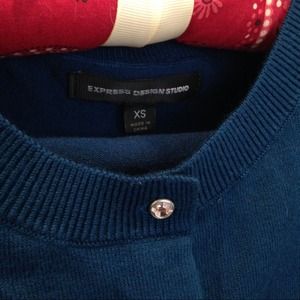 NWOT! Versatile cardigan that can be dressed up or down. Pair with a blouse and trousers or a tee/tank and shorts. Rayon/nylon/spandex. Crew neck. Rhinestone buttons. 3 button detail on sleeves. Color is a beautiful deep teal... Hard to capture true color in photos.