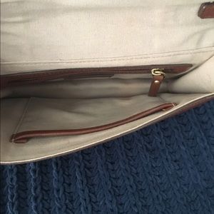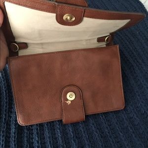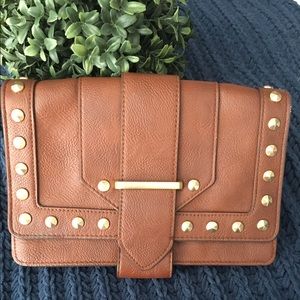 This was bought from Express. Lightly used. As you can see, there is a little wear when you open the clutch but not noticeable when closed.