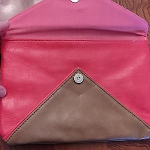 Pink and tan Express clutch wristlet