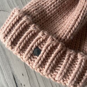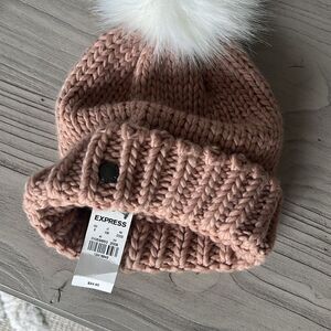 New with tags cold weather beanie hat is a dusty pink color with a big white pom pom. Retails for $26 never worn brand new condition.