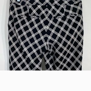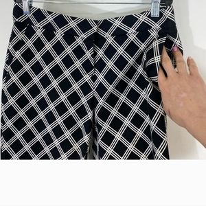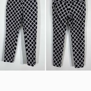 has four regular black and white checkered Express commas pants