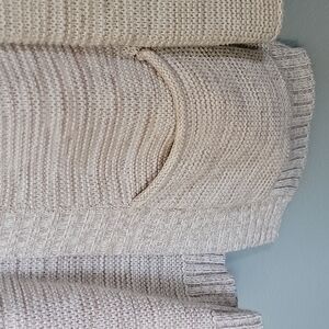 Cream heathered with tan. I am 5'3 and the sleeves were long on me. Has pockets towards the bottom. Minimal signs of wear. Fabric does stretch. Casual, lounge, weekend, brunch, office, workplace, neutral, fall, autumn, minimalist