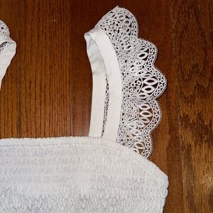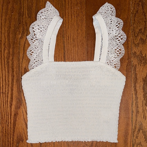 Ruffle sleep cropped top, the color is slightly dingy due to washing but it is a great top!