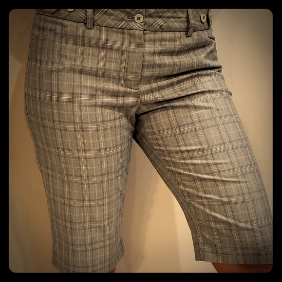 Gray with pin stripe black with white, Size 6. Great Condition.
