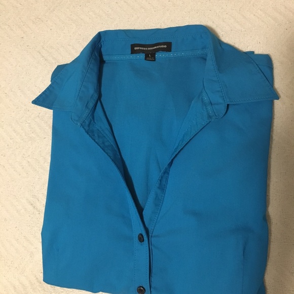 Color teal blouse short sleeve button down