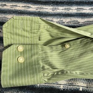 NWOT Express design studio long sleeved men’s shirt size S 14– 14 1/2. This is such an attractive shirt! The green is just beautiful with the white stripes. Check out my closet to bundle and save.:)